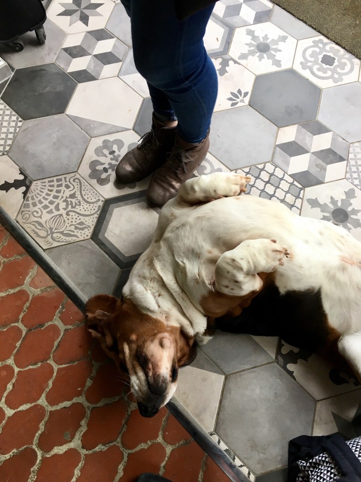 Notre séjour débute à Arbois, dans la capitale des vins du Jura. Ici, le temps file lentement. Un petit ruisseau s’écoule derrière la belle maison de Lulu, Mère Nature s’impose et c’est deux magnifiques bassets hound qui nous accueillent joyeusement dans le hall !
