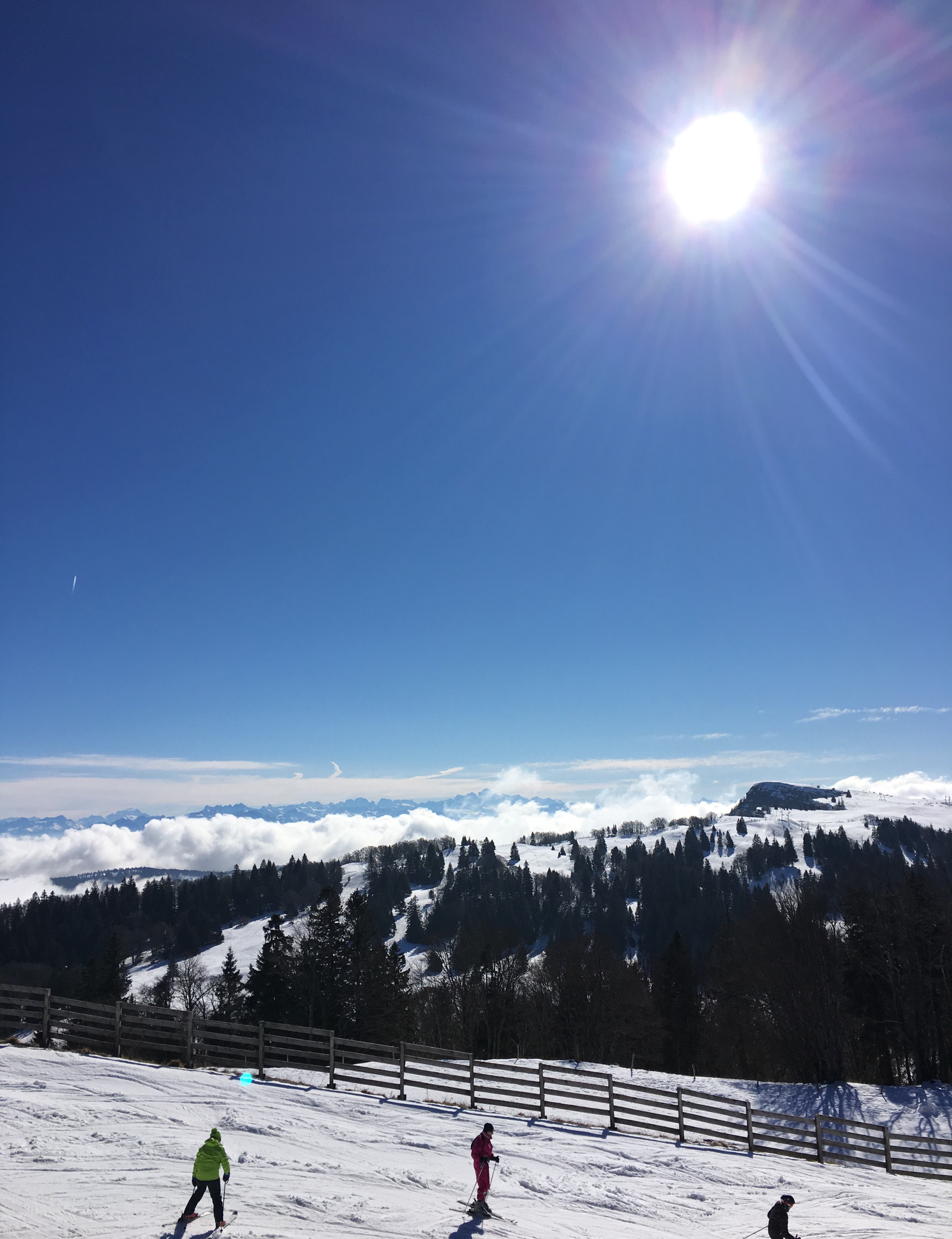 C’est la fin des vacances scolaires et il n’y a presque personne sur les pistes. Un immense terrain de jeu d’environ 37 km s’offre à nous. Tout est bleu, blanc et vert.